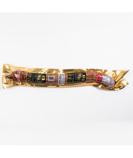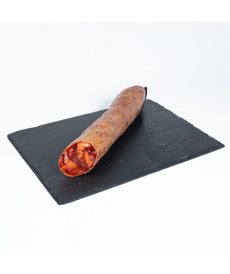 Ingredientes: Carnes de cerdo Ibérico, sal, pimentones y extracto de pimentón, ajo, leche en polvo desnatada, Dextrosa, Estabilizantes (E-450 y E-452i), Antioxidantes (E-331 y E-316) y Conservadores (E-252 y E-250)