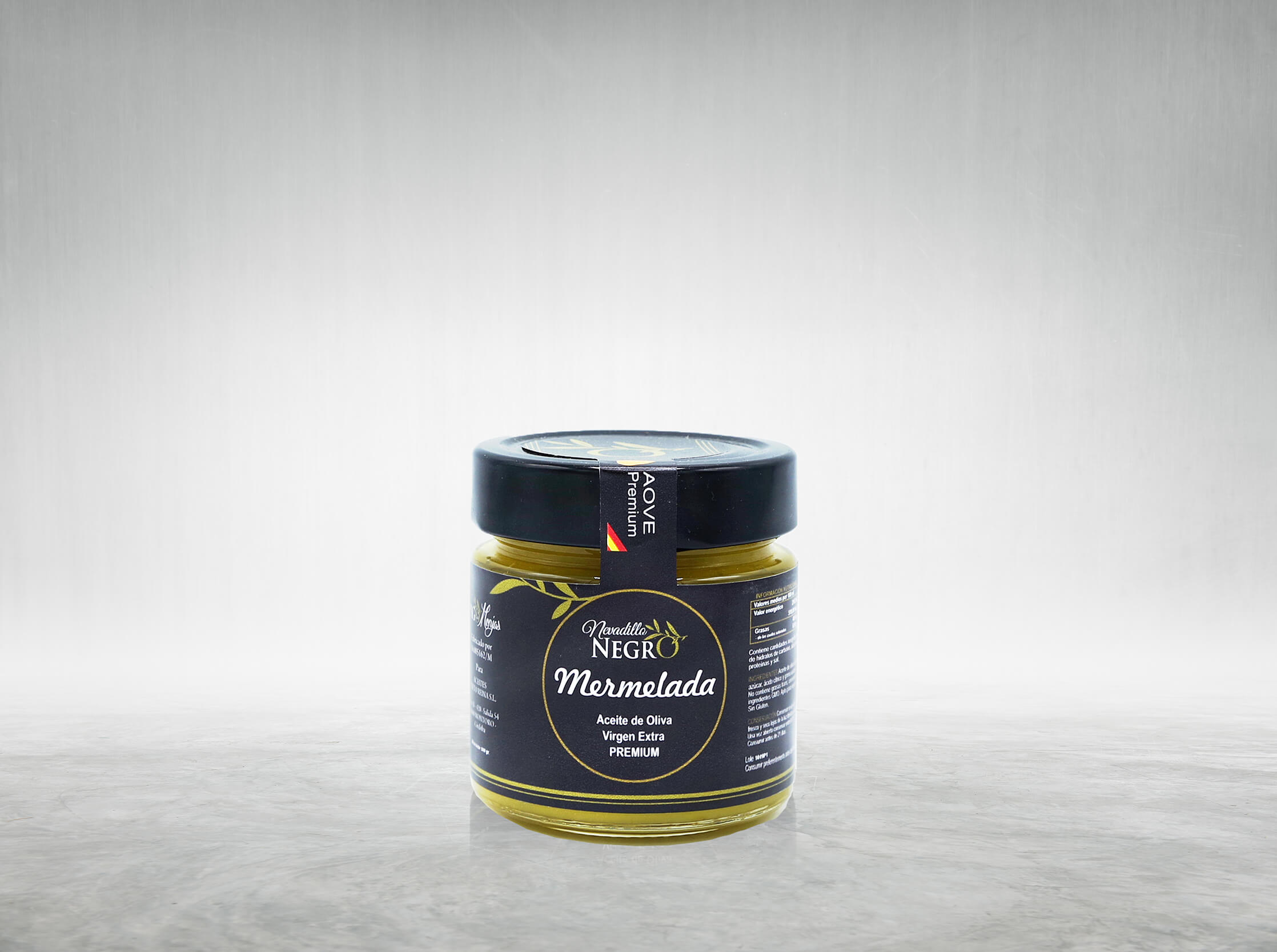 Jalea de AOVE Nevadillo Negro, de textura similar a la MERMELADA, ES ELABORADA DE FORMA ARTESANAL SOLO CON ACEITE DE OLIVA VIRGEN EXTRA DE LA VARIEDAD NEVADILLO NEGRO. IDEAL PARA MEJORAR Y DAR TOQUE A TUS DULCES Y DESAYUNOS. Producto creado después de mucho trabajo buscando la consistencia y textura ideal. Poder ofrecer nuevas formas de consumir nuestro producto estrella es nuestro mayor afán. La Mermelada de AOVE con Nevadillo Negro que ya ha sido reconocido como de los mas exquisitos y saludables del mundo es una apuesta segura que tienes que probar. Y es que este AOVE de Nevadillo Negro ofrece un amargor y un picor peculiares, debido a su alto contenido en polifenoles.